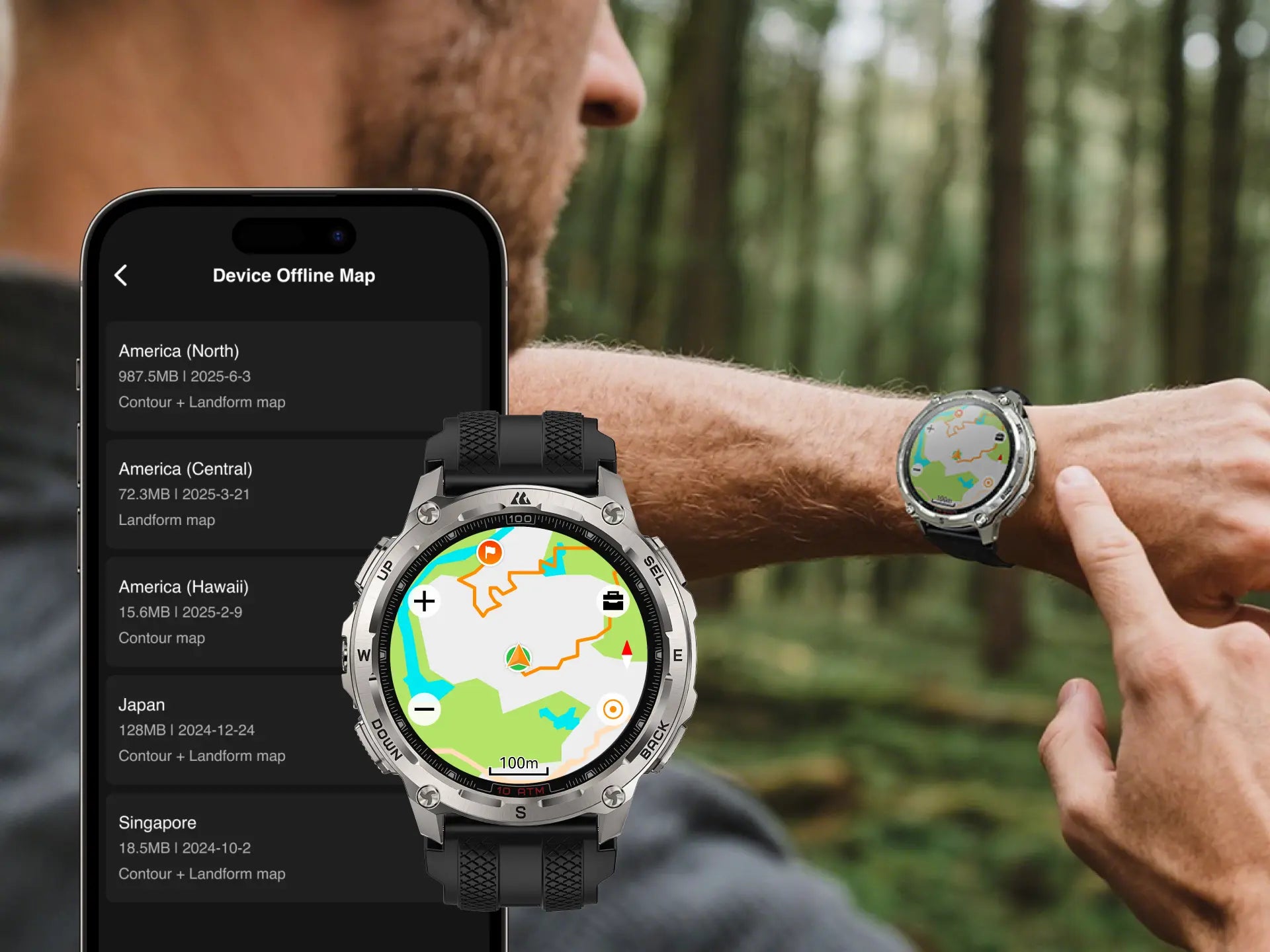 On supported KOSPET Smartwatches, offline maps can be downloaded to the watch in advance, with GPX/KML route import and route or location-point selection to help guide your run directly from your wrist.