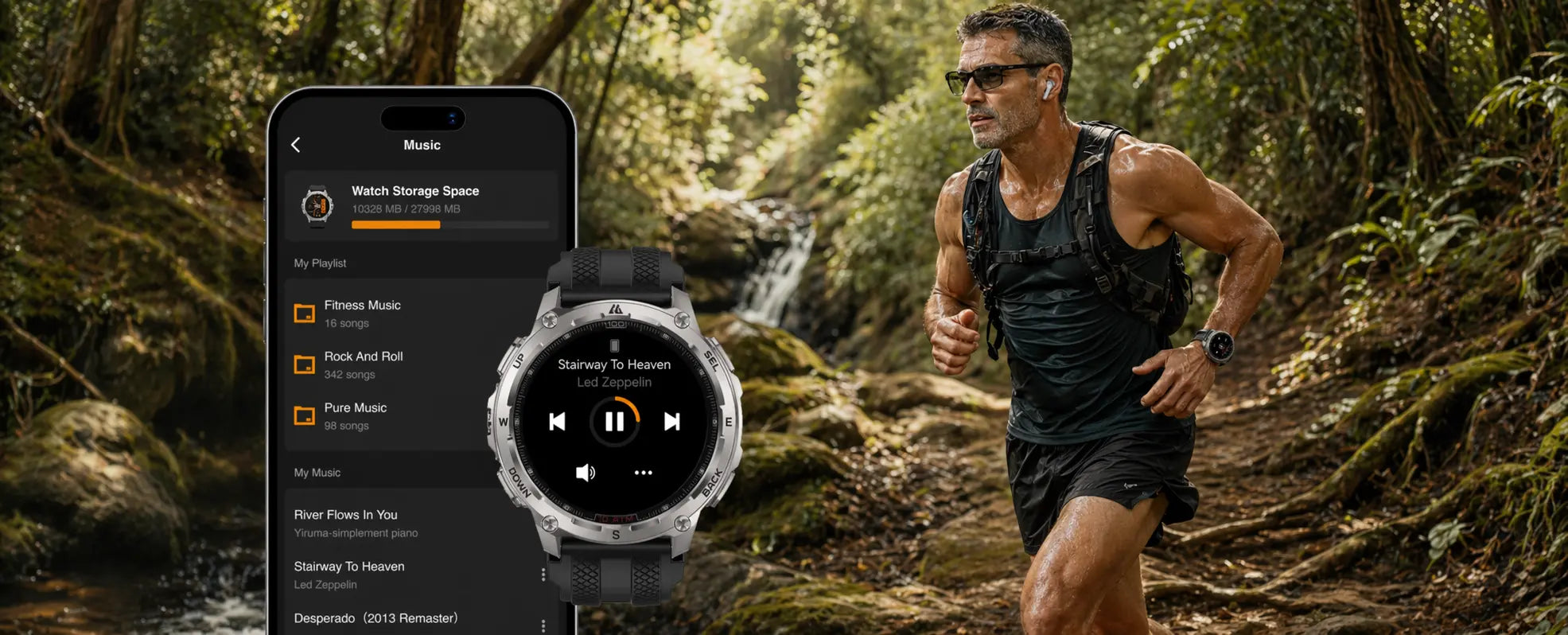 Yes, but it depends on whether the watch supports music storage and Bluetooth audio playback. A running smartwatch with built in music support lets you store songs on the watch, pair Bluetooth headphones, and listen during runs without carrying your phone. On selected KOSPET running watch models, 32GB of local storage can hold about 5,000 songs, which makes music playback much more practical for outdoor training.