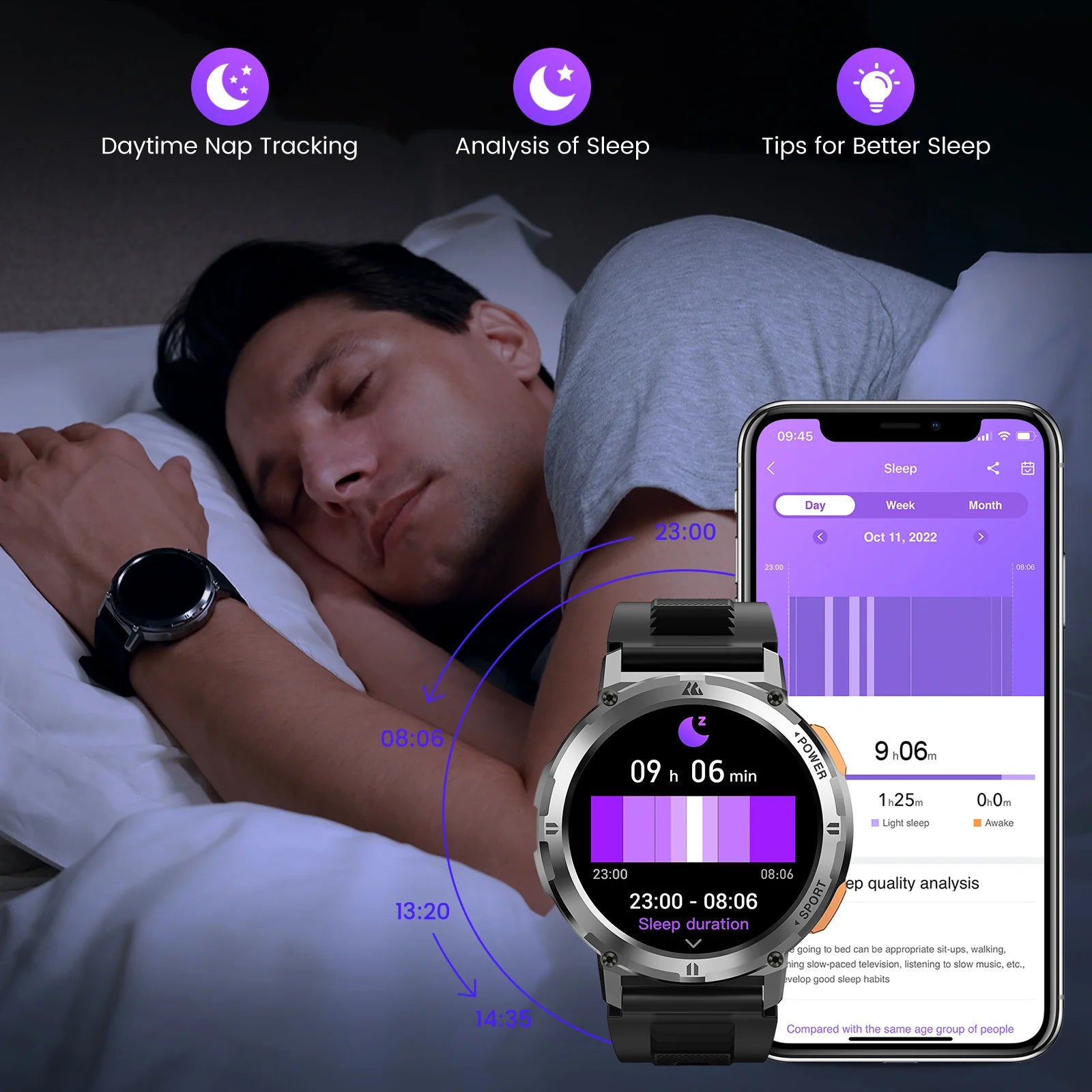 KOSPET FIT Uygulamasına bağlanarak Bluetooth üzerinden telefon görüşmeleri yapabilir ve bileğinizden müzik dinleyebilirsiniz. Dahili ses kod çözme çipi, derin ve zengin baslardan net ve temiz orta seslere kadar HiFi kalitesinde nefes kesici bir ses kalitesi sunar.