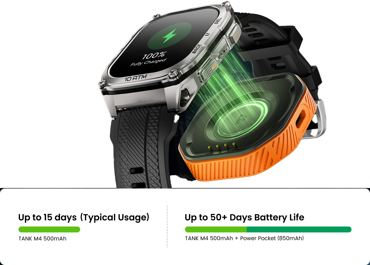 Tüy kadar hafif 26 g tasarımda ekstra 850 mAh pil gücü taşıyın. Manyetik geçmeli şarj özelliği, alıştığınız şarj kablonuzun yerini alarak işleri kolaylaştırırken, çift şarj özelliği Power Pocket ve M4'ün birlikte şarj olmasını sağlayarak hareket halindeyken kullanım kolaylığı için mükemmeldir.